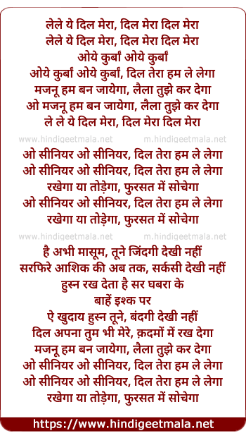 Lyrics of Lele Ye Dil Mera (O Senior) - लेले ये दिल मेरा