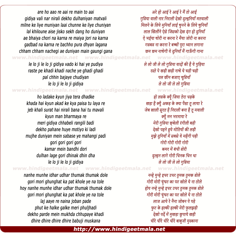 Lyrics of Lelo Ji Lelo Gudiya - लेलो जी लेलो गुडिया