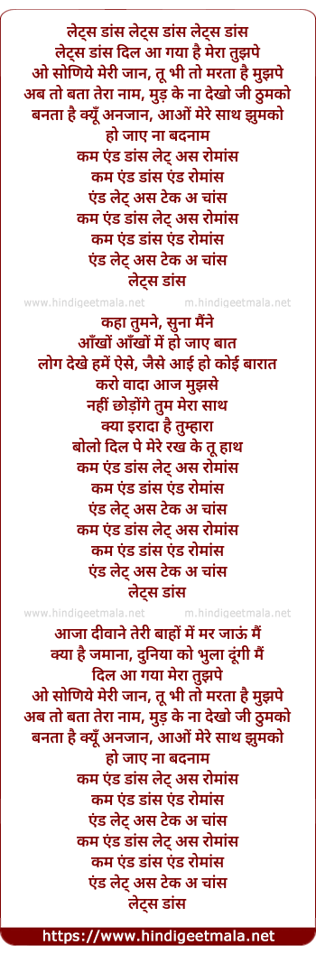 Poetic Translation - Lyrics of Let S Dance - लेट्स डांस लेट्स डांस लेट्स डांस