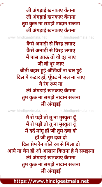Lyrics of Li Angdayi Khankaye Kangna - ली अंगड़ाई खनकाए कँगना