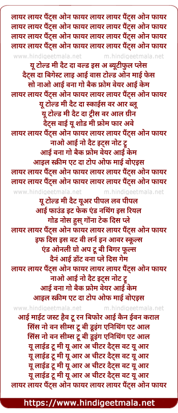 Lyrics of Liar Liar - लायर लायर पैंट्स ओन फायर लायर लायर पैंट्स ओन फायर