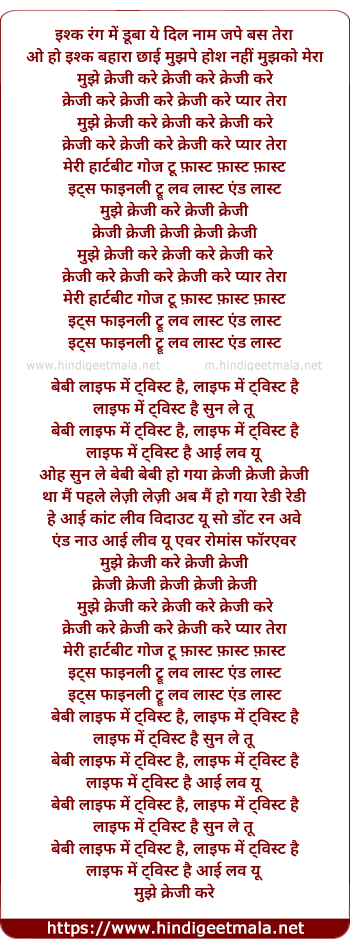 mujhe crazy kare crazy kare crazy kare