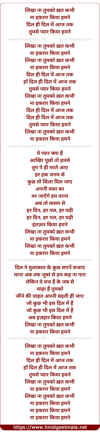 Lyrics of Likha Naa Tumko Khat Kabhi - लिखा ना तुमको ख़त कभी
