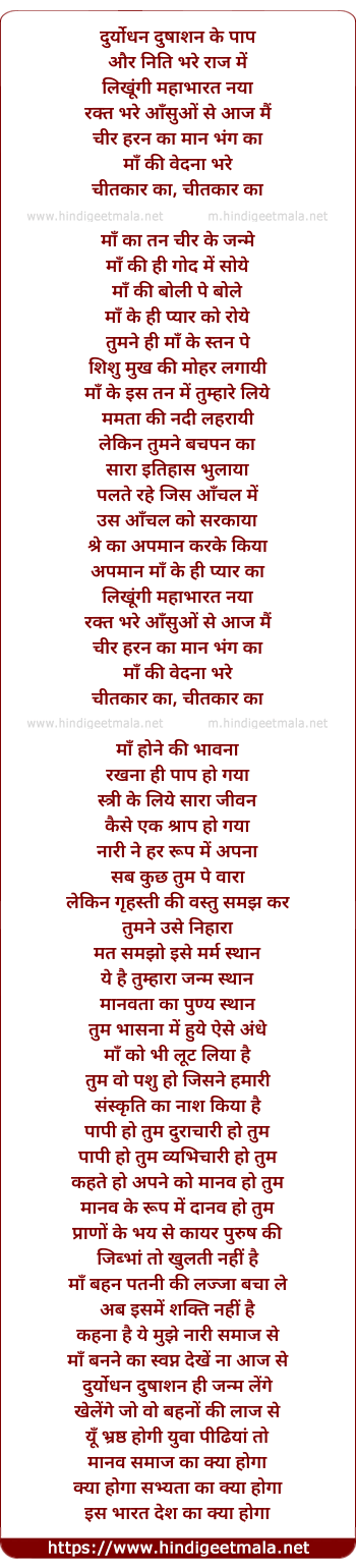 Lyrics of Likhungi Mahabharat Naya - लिखूंगी महाभारत नया