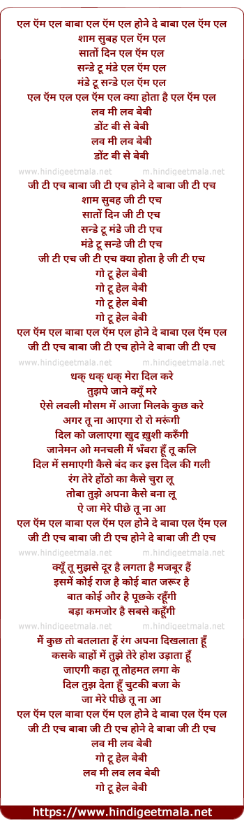 Lyrics of L M L Baba L M L - एल ऍम एल बाबा एल ऍम एल