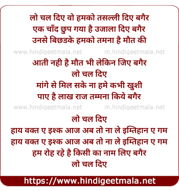 Lyrics of Lo Chal Di_E Vo Hamako Tasalli Di_E Bagair