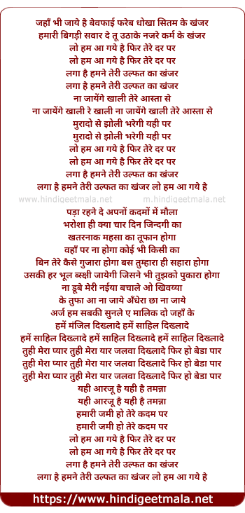 Lyrics of Lo Hum Aa Gaye Hai Phiir Tere Dar - लो हम आ गये है फिर तेरे दर