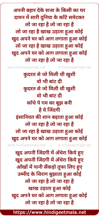Lyrics of Lo Ja Raha Hai Khakh Udata Hua Koi - लो जा रहा है खाख उड़ाता हुआ कोई