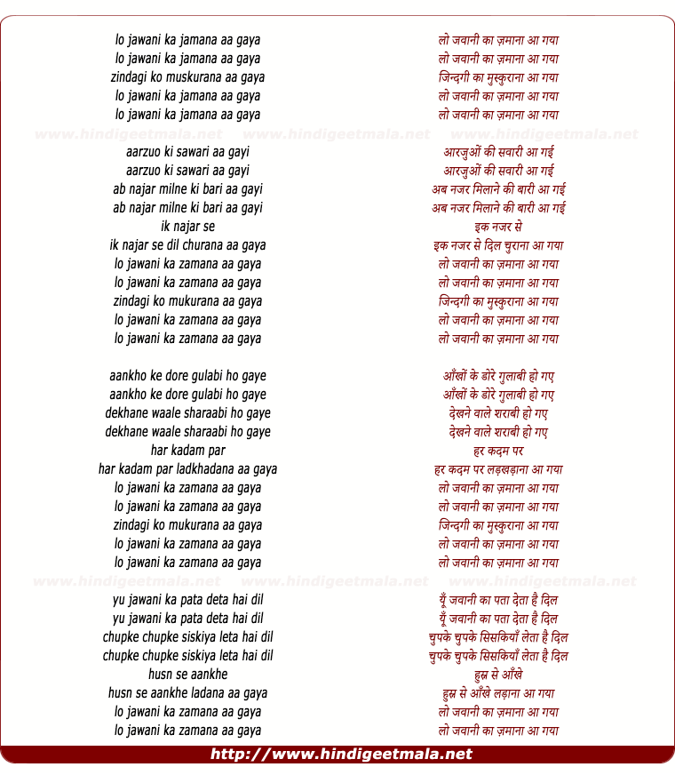 Lyrics of Lo Jawani Ka Zamana Aa Gaya - लो जवानी का ज़माना आ गया