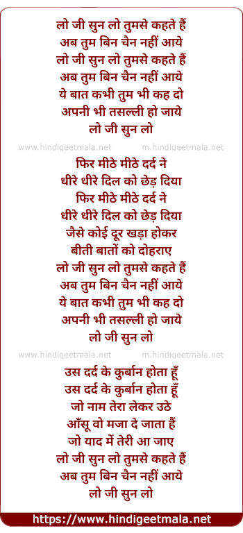 Lyrics of Lo Ji Sun Lo Tumse Kahte Hai - लो जी सुन लो तुमसे कहते हैं