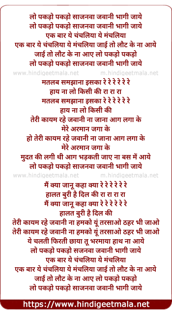 Lyrics of Lo Pakdo Pakdo Sajanwa - लो पकड़ो पकड़ो साजनवा