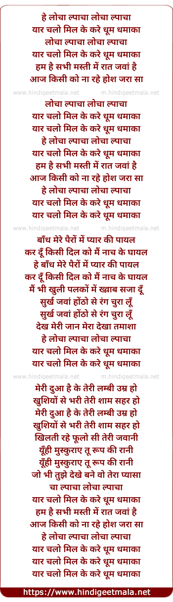 Lyrics of Locha Lapacha Locha Lapacha - लोचा ल्पाचा लोचा ल्पाचा