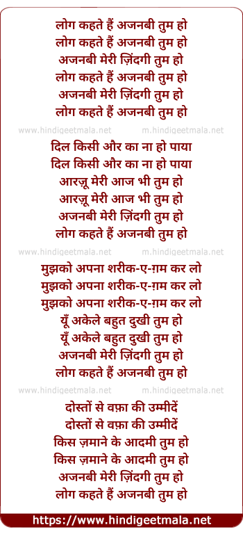 Lyrics of Log Kehte Hain Ajanabi Tum Ho - लोग कहते हैं अजनबी तुम हो