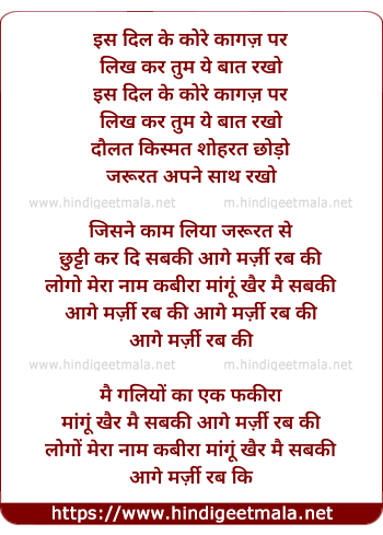 Lyrics of Logo Mera Naam Kabira - लोगो मेरा नाम कबीरा