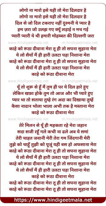 kahe ko rutha diwana mera tu hi to sapana suhana mera