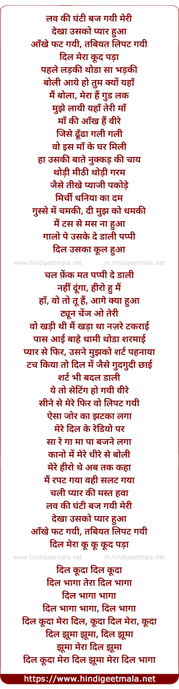 Lyrics of Love Ki Ghanti Baj Gayi Meri - लव की घंटी बज गयी मेरी