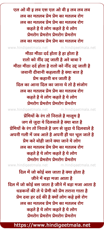 Lyrics of Love Love Ke Matlab Prem - लव लव का मतलब प्रेम