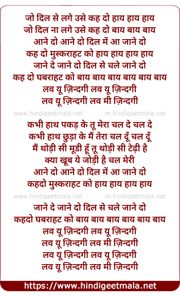 Lyrics of Love You Zindagee - लव यू ज़िन्दगी