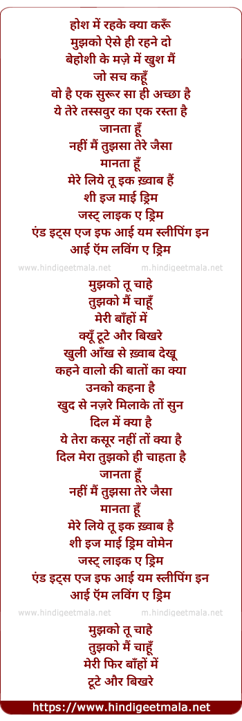 Lyrics of Loving A Dream - होश में रहके क्या करूँ