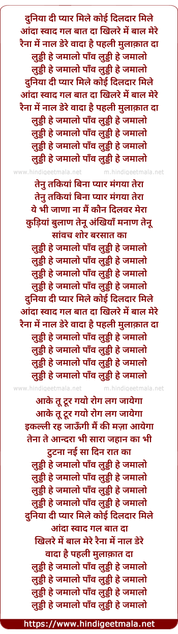 Lyrics of Luddi He Jamaalo - दुनिया दी प्यार मिले