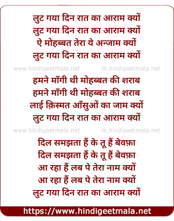 Lyrics of Lut Gaya Din Raat Ka Aaram Kyu - लुट गया दिन रात का आराम क्यों