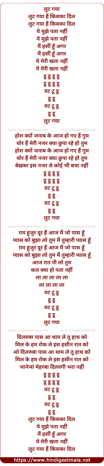 Lyrics of Lut Gayaa Hai Kiska Dil - लुट गया है किसका दिल