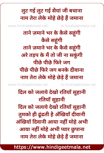 Lyrics of Lut Gayi Lut Gayi Saiyyan Ji Bachana - लुट गई लुट गई सैयां जी बचाना