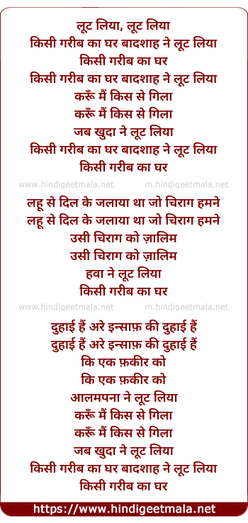 Lyrics of Lut Liyaa, Kisi Garib Kaa Ghar - लूट लिया, किसी गरीब का घर