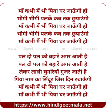 Lyrics of Maa Kabhi Main Bhi Piya Ghar Jaaungi - माँ कभी मैं भी पिया घर जाऊँगी