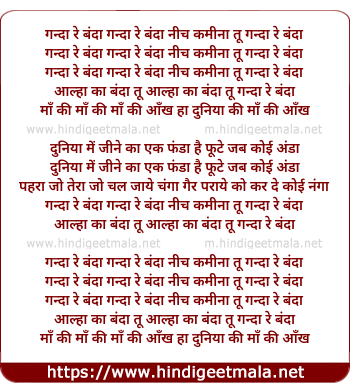 ganda re banda ganda banda neech kaamina tu ganda re banda