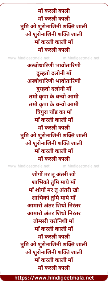 Poetic Translation - Lyrics of Maa Korali Kali - माँ करली काली