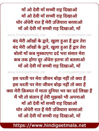 Lyrics of Maa O Devee Maa Sachchee Raah Dikhaao - माँ ओ देवी माँ सच्ची राह दिखाओ