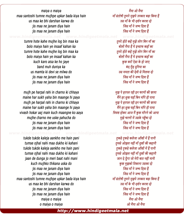 Lyrics of Maa Santoshi Tumne - माँ संतोषी तुमने