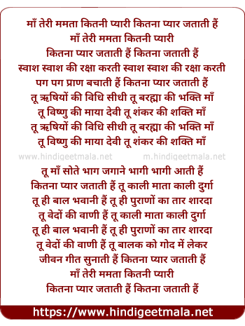 Lyrics of Maa Teri Mamta Kitni Pyari - माँ तेरी ममता कितनी प्यारी