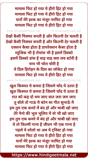 Lyrics of Maamla Fit Ho Gaya, Ye Hero Hit Ho Gaya - मामला फिट हो गया, ये हीरो हिट हो गया