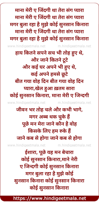 Lyrics of Maana Meree Ai Jindagee - माना मेरी ए जिन्दगी