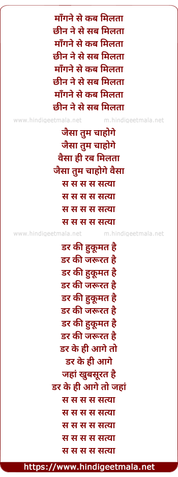 maangne se kab milta chheen ne se sab milta