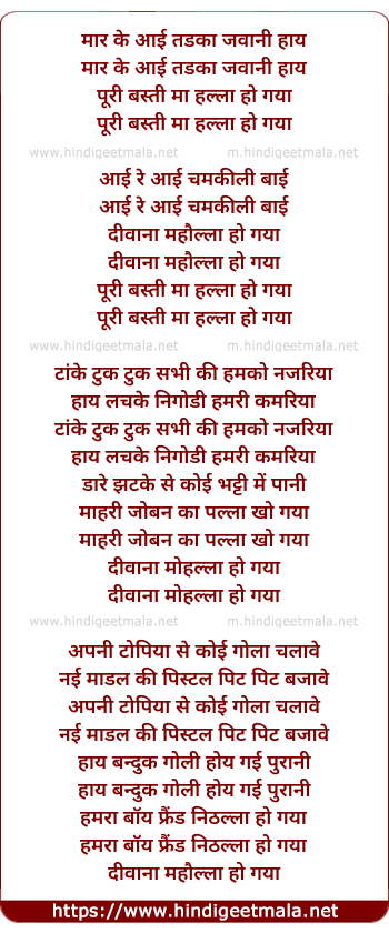 Poetic Translation - Lyrics of Maar Ke Aayi Tadaka Jawani - मार के आई तडका जवानी