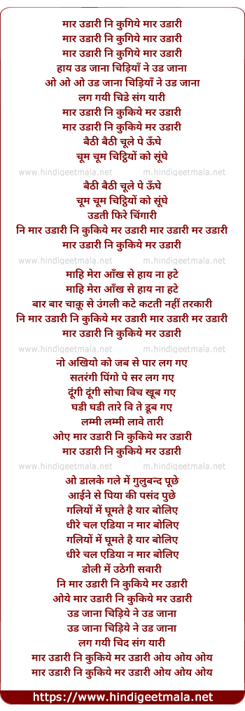 Lyrics of Maar Udari Ni Kukiye - मार उडारी नि कुगिये मार उडारी