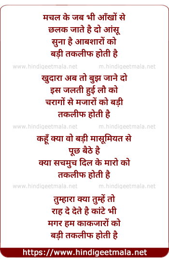 Lyrics of Machal Ke Jab Bhi Aankhon Se Chhalak Jaate Hain Do Aansu - मचल के जब भी आँखों से