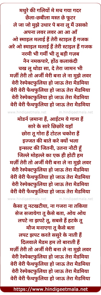 Poetic Translation - Lyrics of Madamiyan - मैडमिया