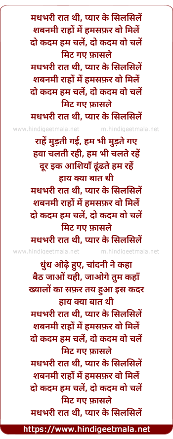 Lyrics of Madh Bhari Raat Thi Pyar Ke Silsile - मधभरी रात थी, प्यार के सिलसिलें
