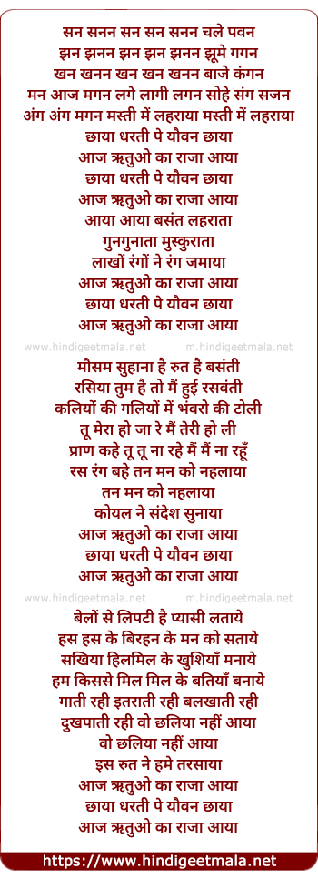 Lyrics of Madhur Preet Sangeet (San Sanan Chale Pawan) - सन सनन सन सन सनन चले पवन