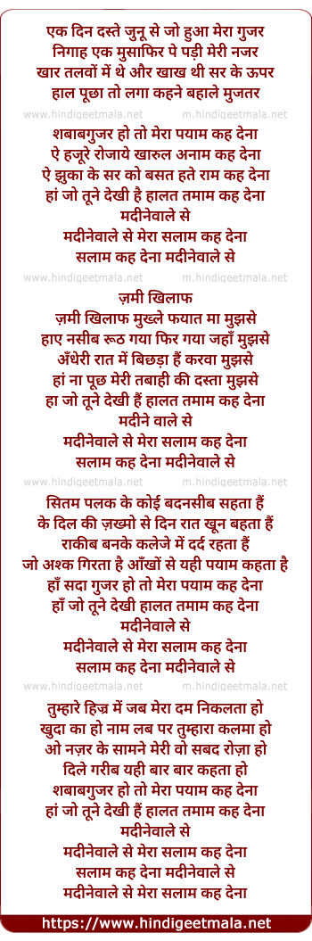 Lyrics of Madinewale Se Mera Salaam - मदीनेवाले से मेरा सलाम