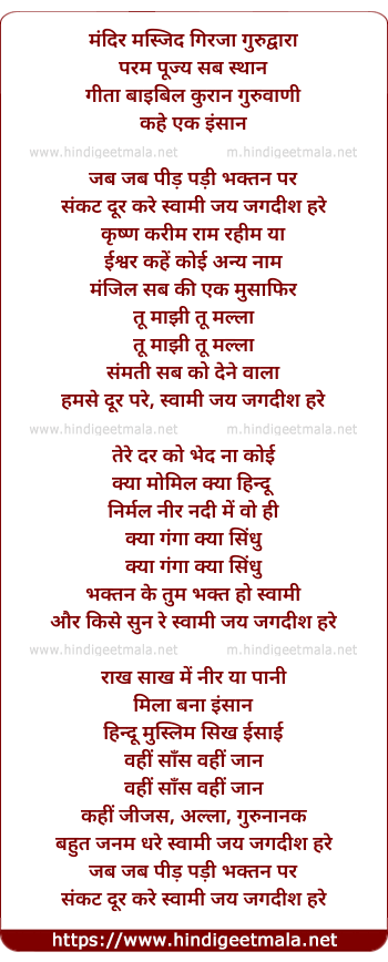 aur kise sun re swaami jay jagdish hare