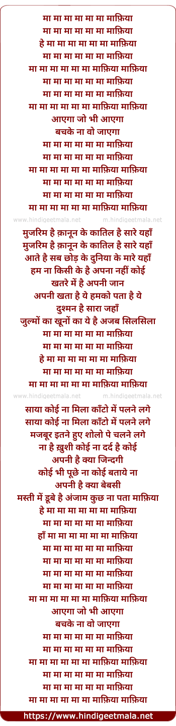 Lyrics of Mafia Mafia - माफ़िया माफ़िया