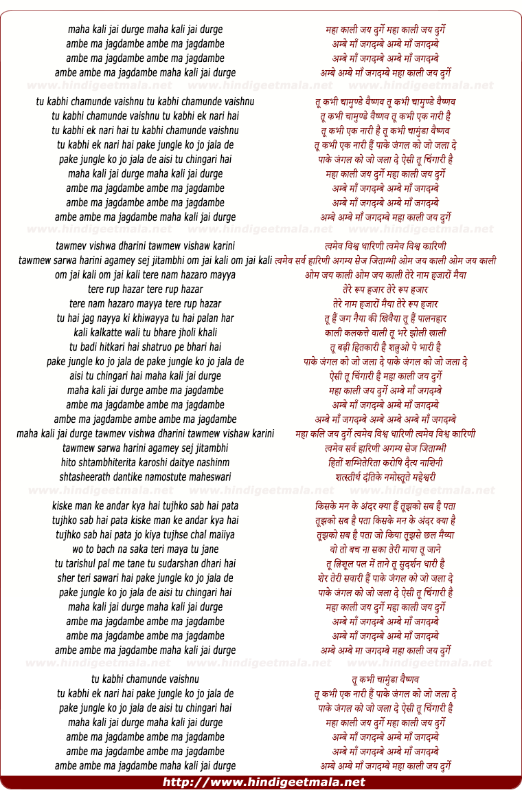 Lyrics of Maha Kali Jai Durge - महा काली जय दुर्गे महा काली जय दुर्गे