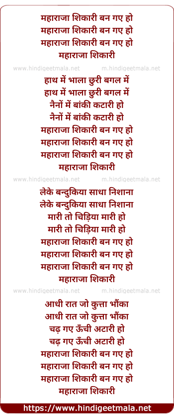 Lyrics of Maharaj Shikari Ban Gaye Ho - महाराजा शिकारी बन गए हो
