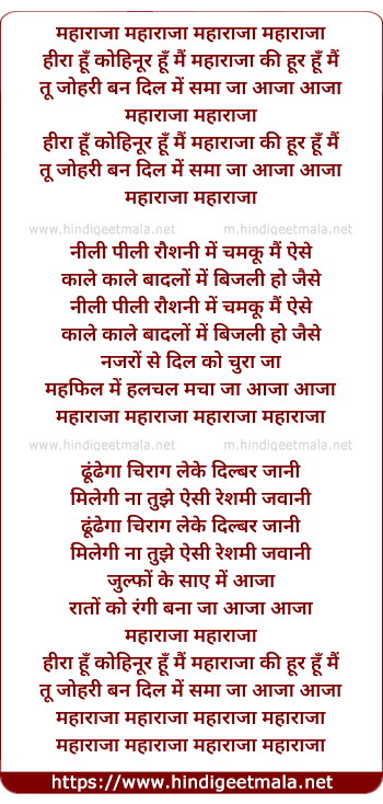 Lyrics of Maharaja Maharaja - महाराजा महाराजा