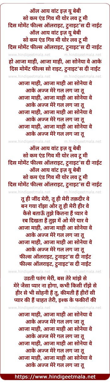ho aaja mahi, aaja mahi, aa soneya ve aake